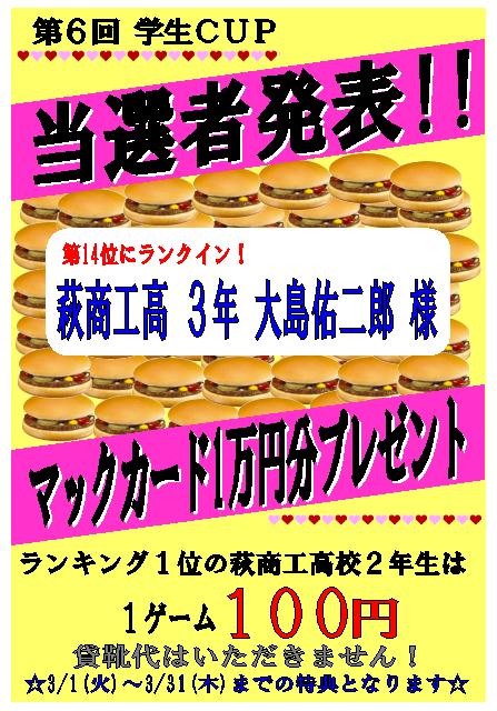 さて!みなさんの気になるハンバーガー100個分の商品券をゲットしたラッキーBoyはこの方です!!