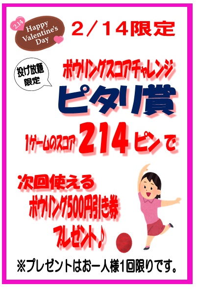 ボウリングから2/14バレンタインデー限定イベントのお知らせ