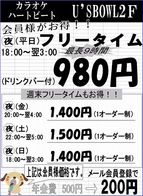 2011/10/21カラオケお得な280円メニュー好評実施中!!