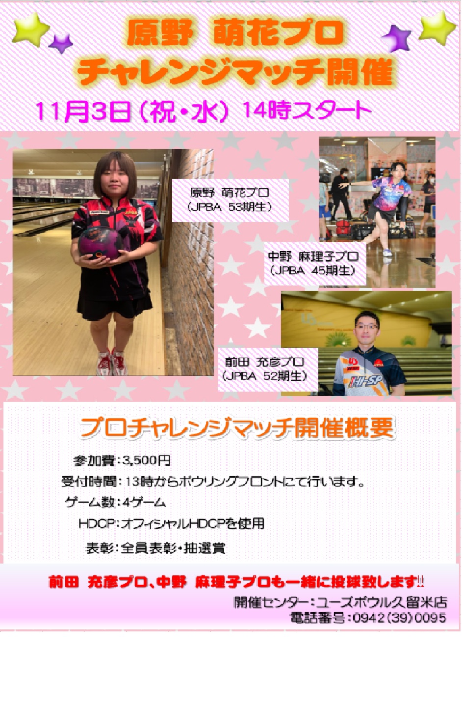 11月3日(祝・水)原野 萌花プロ チャレンジマッチ開催