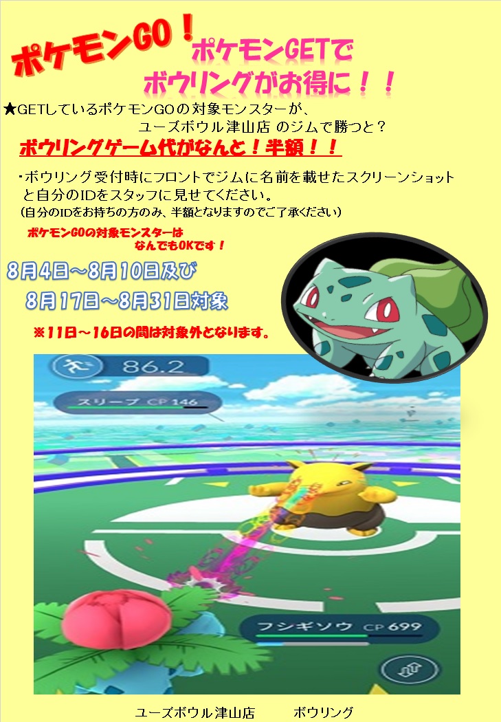 ポケモンGO!!ボウリングがお得に!