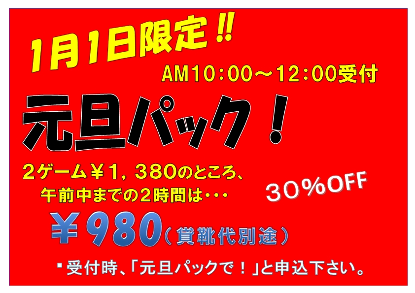 2016年1月1日時間限定! 元旦パック!