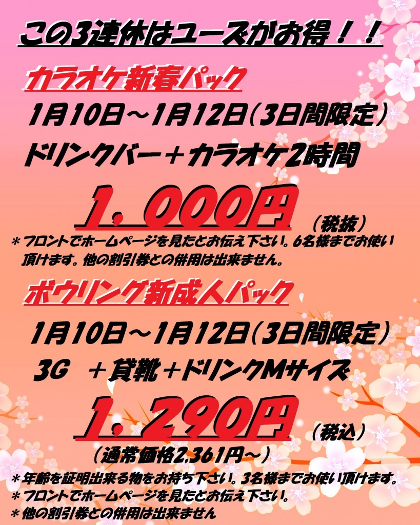2015/01/24LINEでユーズボウル津山店をお友達登録するとドリンクバー無料クーポンが貰えます♪