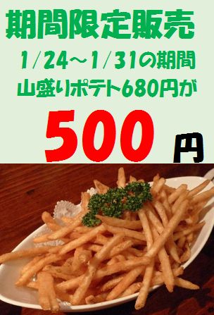 また通常¥680の美味しい山盛りポテトを1/24~1/31の期間限定で