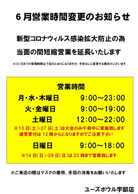 火曜日・金曜日の営業終了時間が18時から19時に変更となりました。